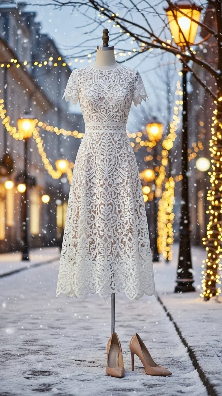 Lace midi dresses feel romantic and elegant. Pair with neutral heels to elongate the legs. Add simple stud earrings. If the dress is too formal, add a cropped sweater or coat for balance. Works for dinner dates or holiday shows.