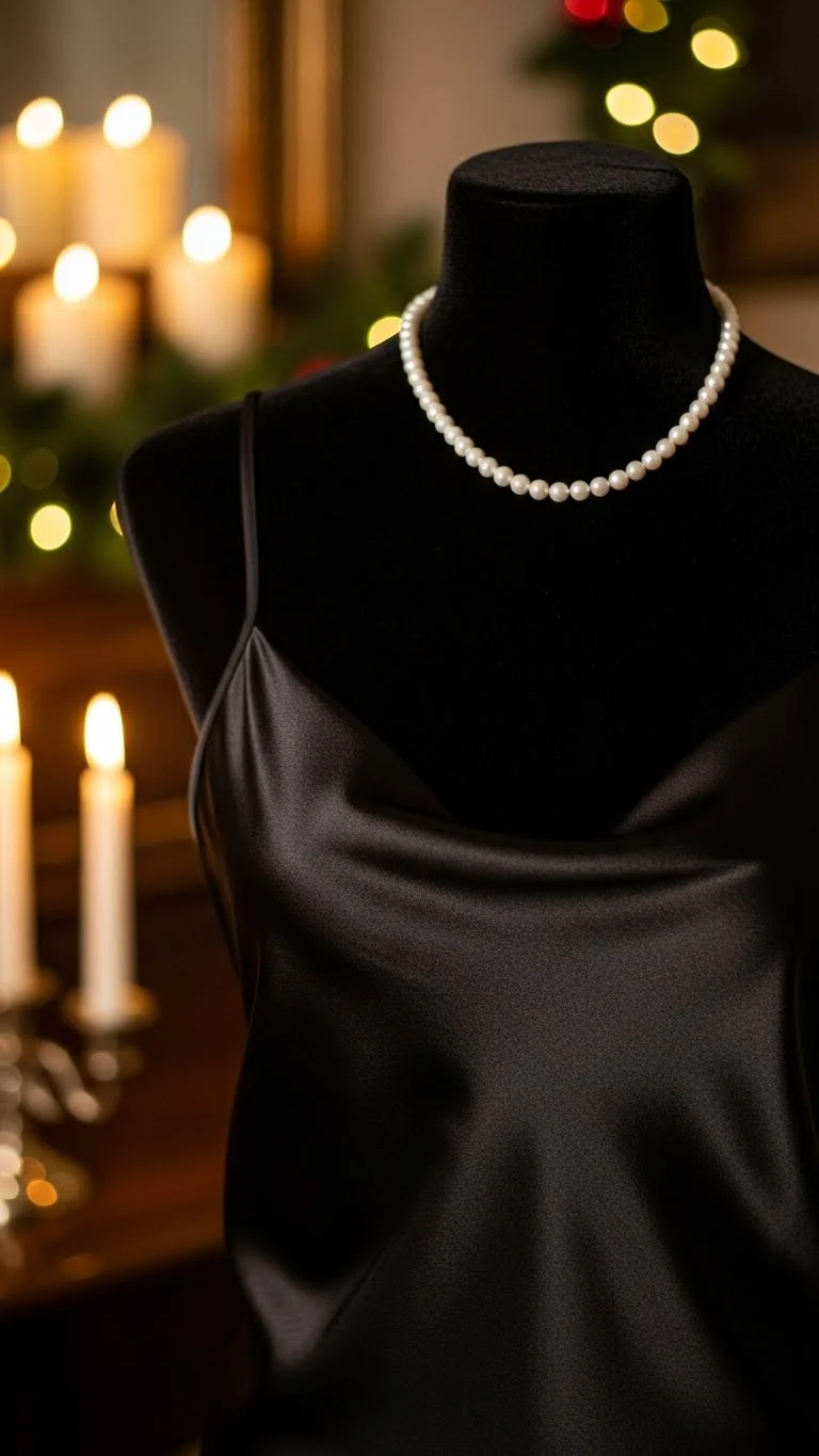 A black satin jumpsuit offers a sleek alternative to gowns. Look for a V-neck or wrap style to create shape. Add a statement belt—gold, silver, or jeweled—to break up the black and highlight your waist. Many affordable belts work well for this. If the legs are too long, a quick hem or heel solves it. Add silver earrings and a matching clutch. Shoes can be metallic or plain black. You can drape a faux-fur wrap over your shoulders for warmth. For a DIY trick, add small crystals along the neckline using fabric glue. A neat ponytail or bun works well with this outfit. Jumpsuits photograph cleanly because the single color creates a long, smooth line.