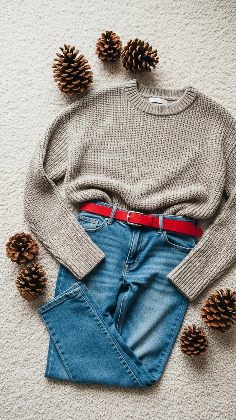 Belts are small but powerful. Choose a holiday-colored belt for subtle flair. Affordable belts can be DIYed with ribbons. Works for both casual and semi-formal outfits. A quick addition instantly elevates a simple ensemble.