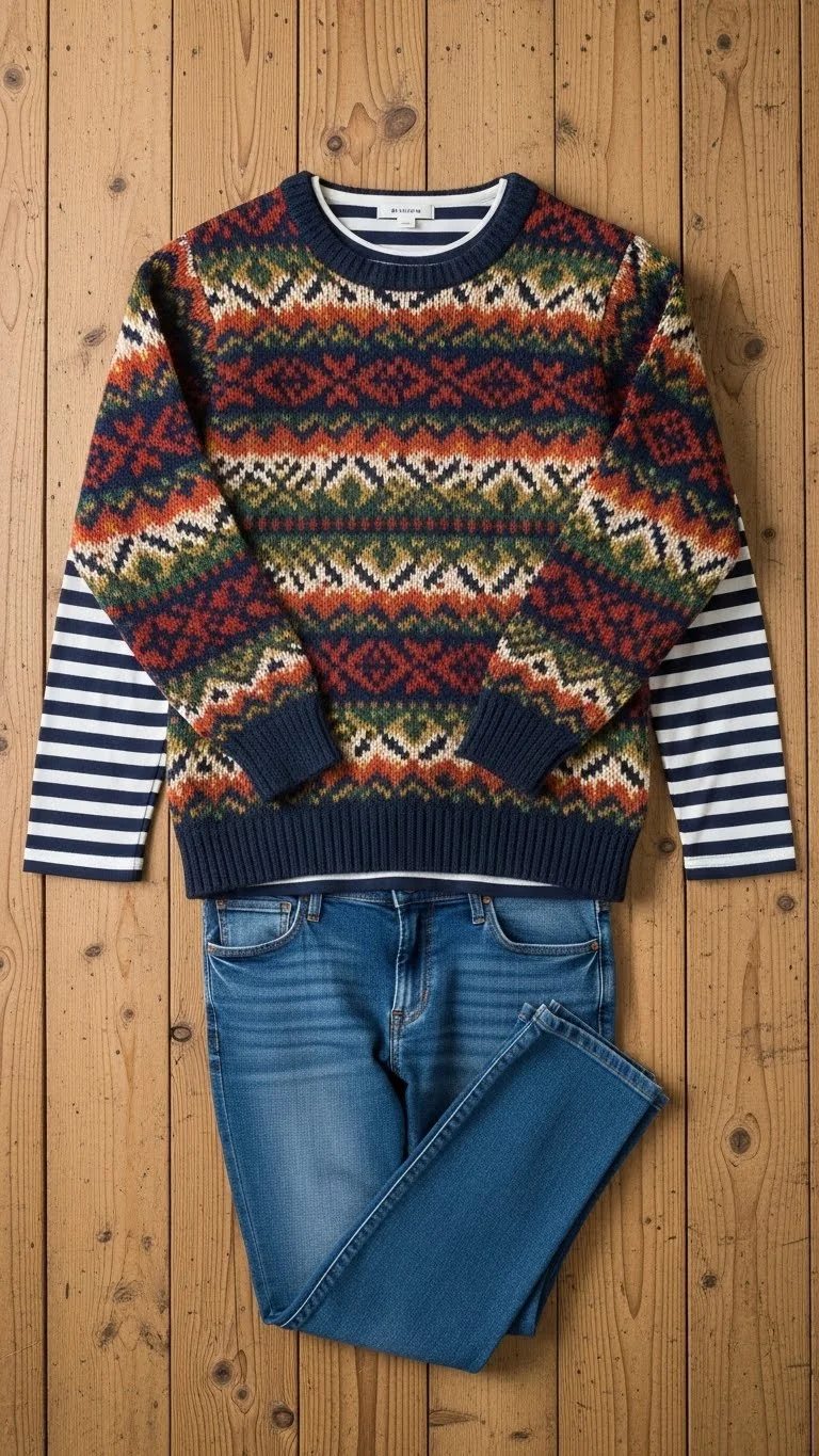 Mixing patterns can be festive if done subtly. Pair stripes with muted holiday prints. Affordable options abound at thrift stores. DIY tweaks include hand-stitching small accents. Works for casual or office parties. Adds personality without overwhelming.