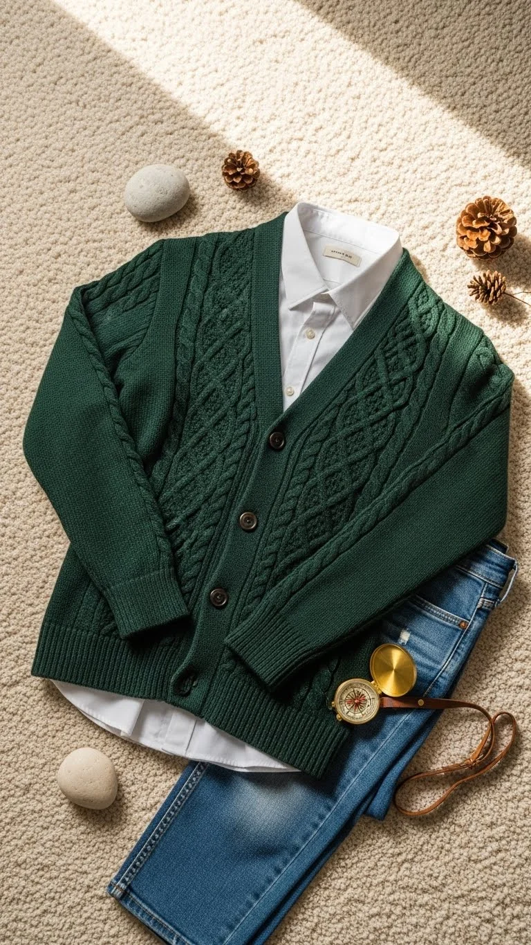 Cardigans add warmth and dimension. Layer over shirts or thin sweaters. Affordable cardigans can be thrifted. DIY options include adding festive buttons or patches. Works for casual gatherings or office events. Comfortable and stylish.