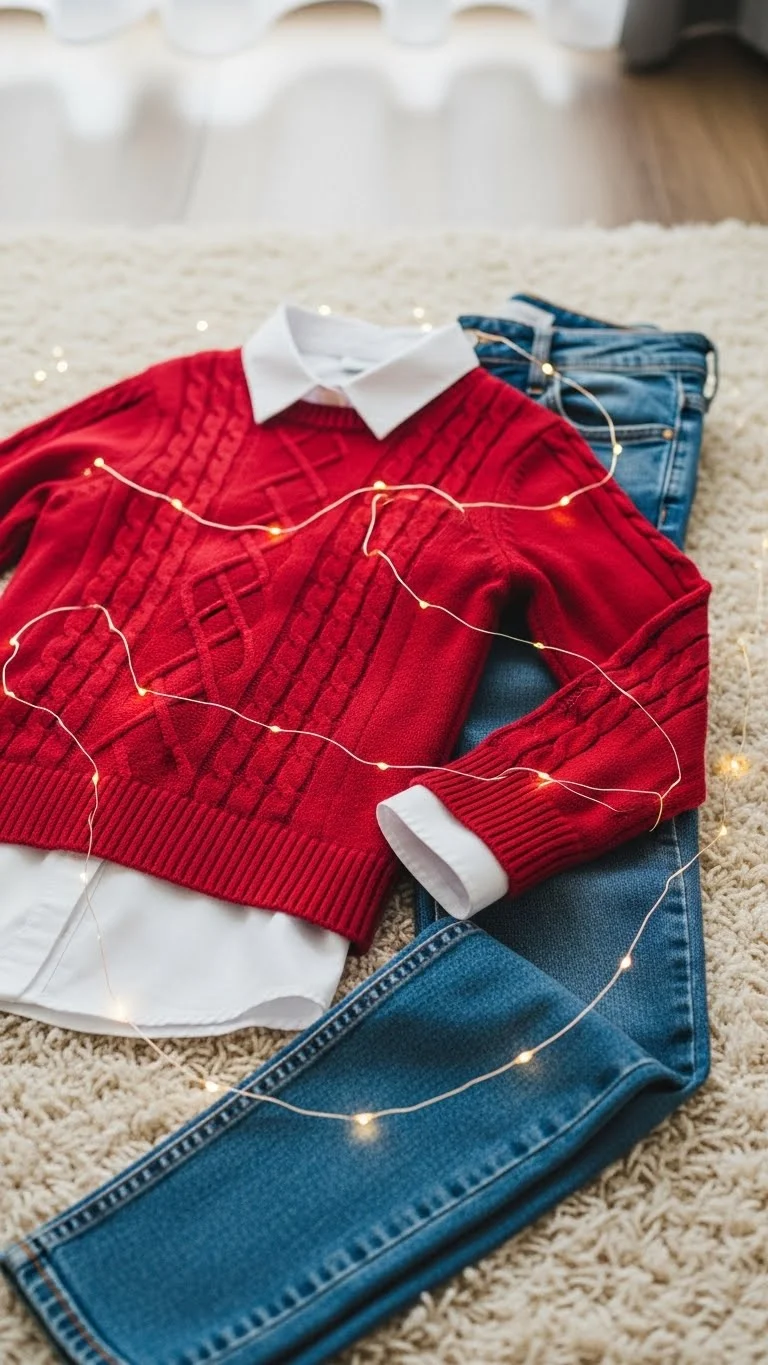 Layering adds depth and style. Pair a bright sweater over a crisp white shirt for a polished look. Roll sleeves or peek out collars for interest. Affordable layering pieces are easy to find second-hand. This trick works for both casual and semi-formal events. It keeps you warm, stylish, and festive without buying new expensive outfits.