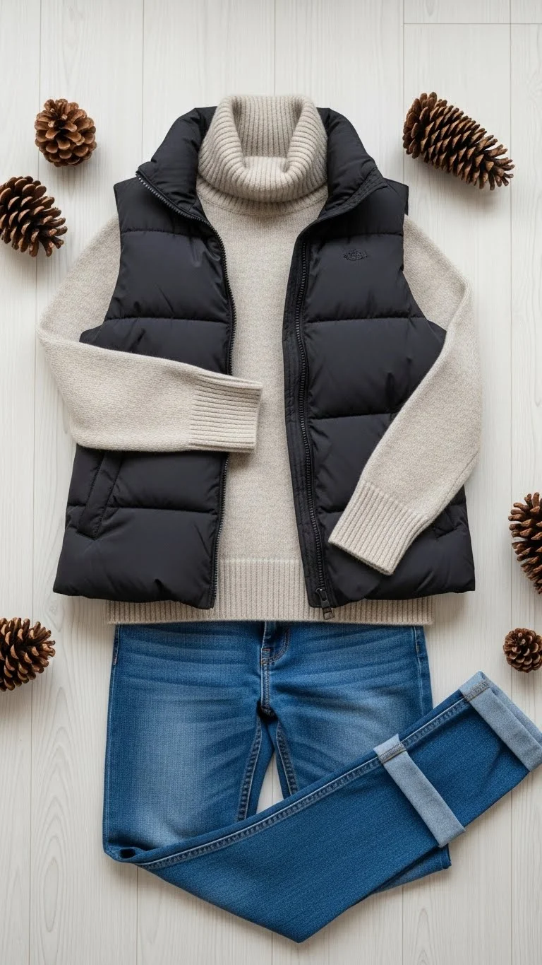 Vests add dimension and warmth. Layer a vest over a long-sleeve shirt or sweater for instant style. Affordable vests can be thrifted. DIY options include adding pins or patches. Works for casual gatherings, outdoor events, or office holiday parties. Easy, practical, and stylish.