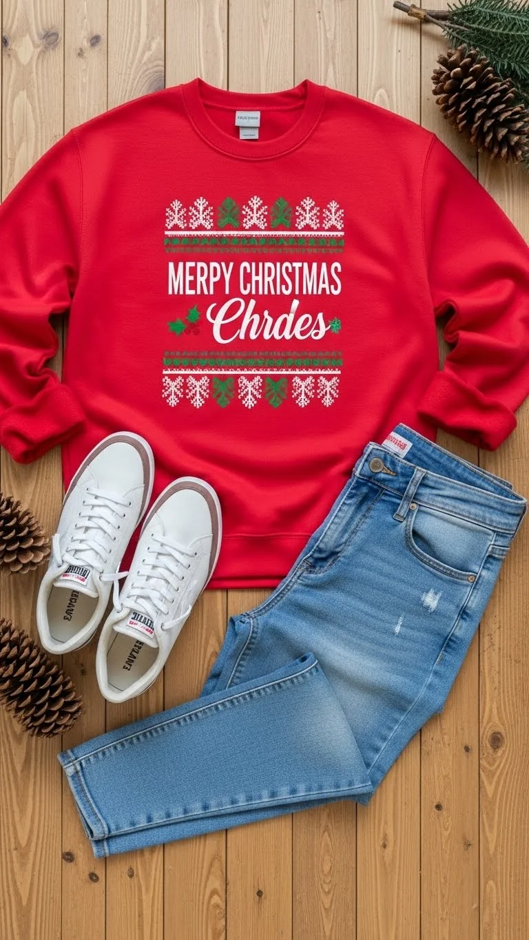 Graphic sweatshirts are fun and casual. Pair with jeans for an easygoing look. Affordable options abound online, or DIY by painting your own festive design. Perfect for casual family gatherings or laid-back office events. Comfortable, playful, and seasonally spirited without feeling overdone.