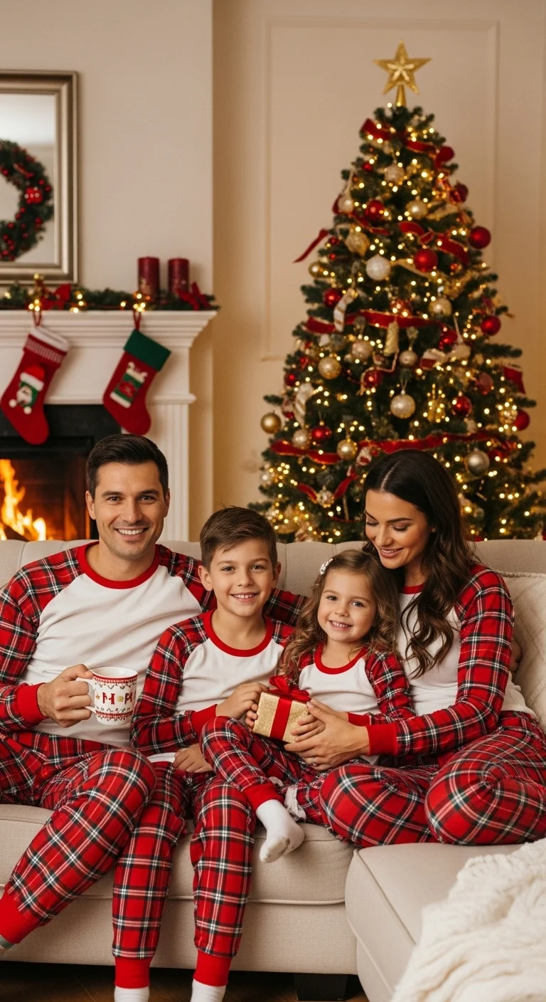 Matching Christmas pajamas are perfect for cozy mornings. Look for prints like candy canes, snowflakes, or reindeer. Budget tip: Affordable sets can be found under $30. DIY: Customize with fabric paint or iron-on patches. Ideal for home celebrations, photo sessions, or casual family mornings.