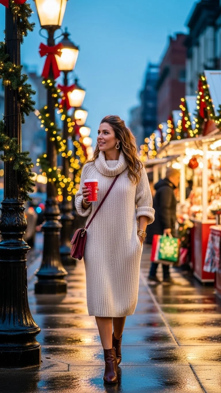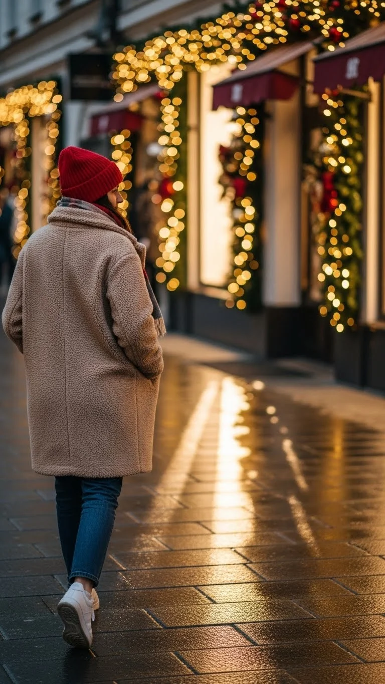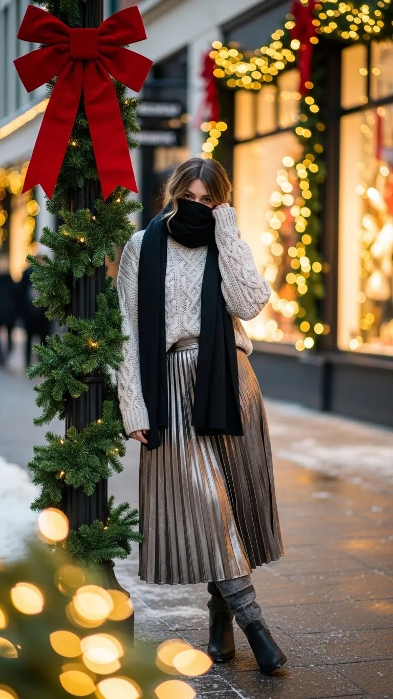 This look is great for outdoor Christmas markets, casual dinners, or street strolls. It feels warm but stylish, and it doesn’t require special pieces.