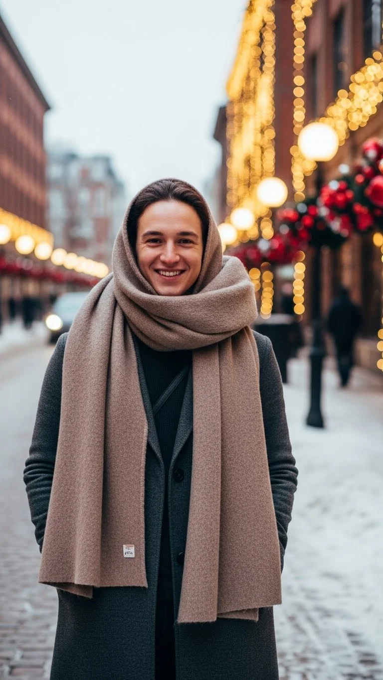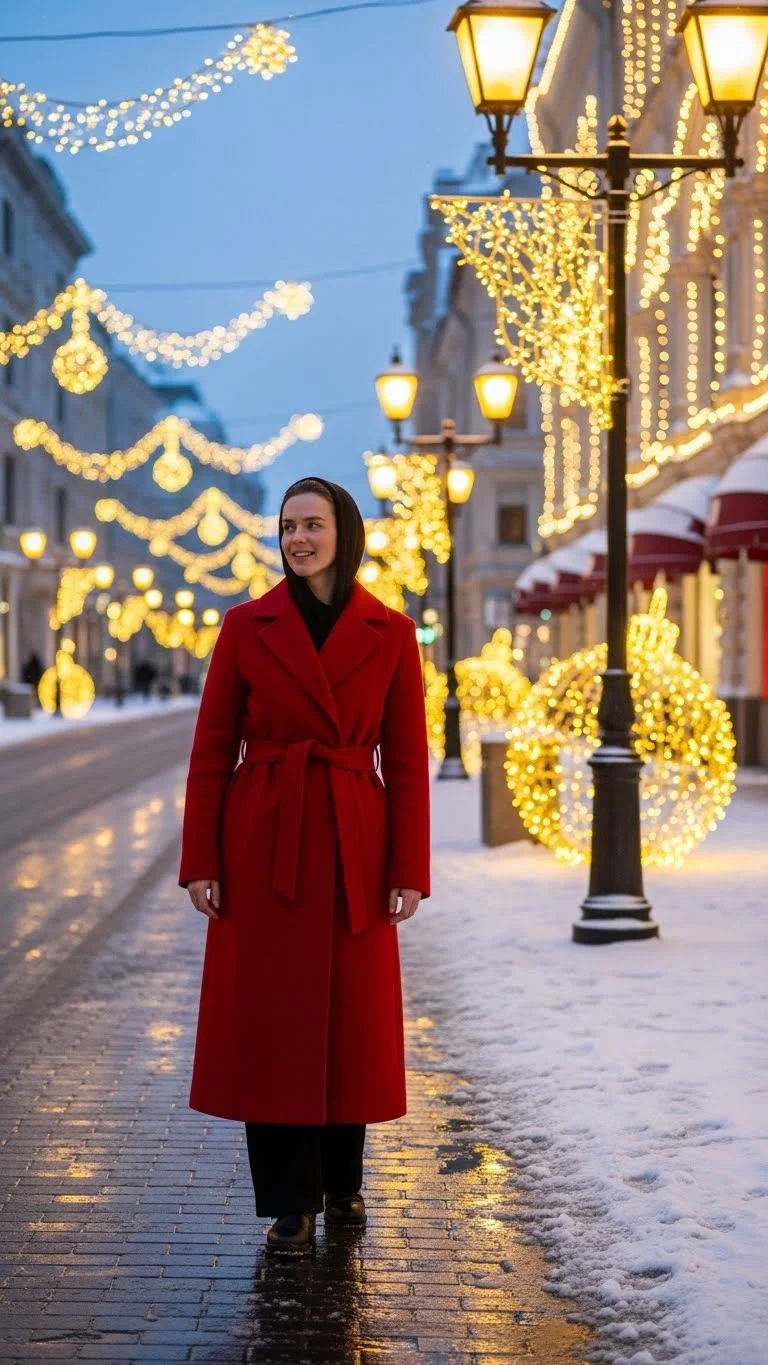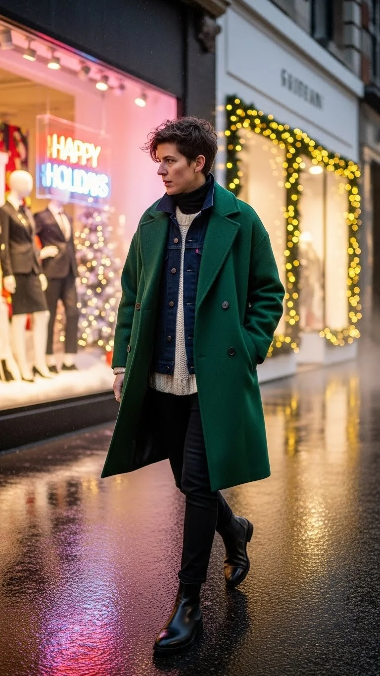 This look is great for outdoor Christmas markets, casual dinners, or street strolls. It feels warm but stylish, and it doesn’t require special pieces.