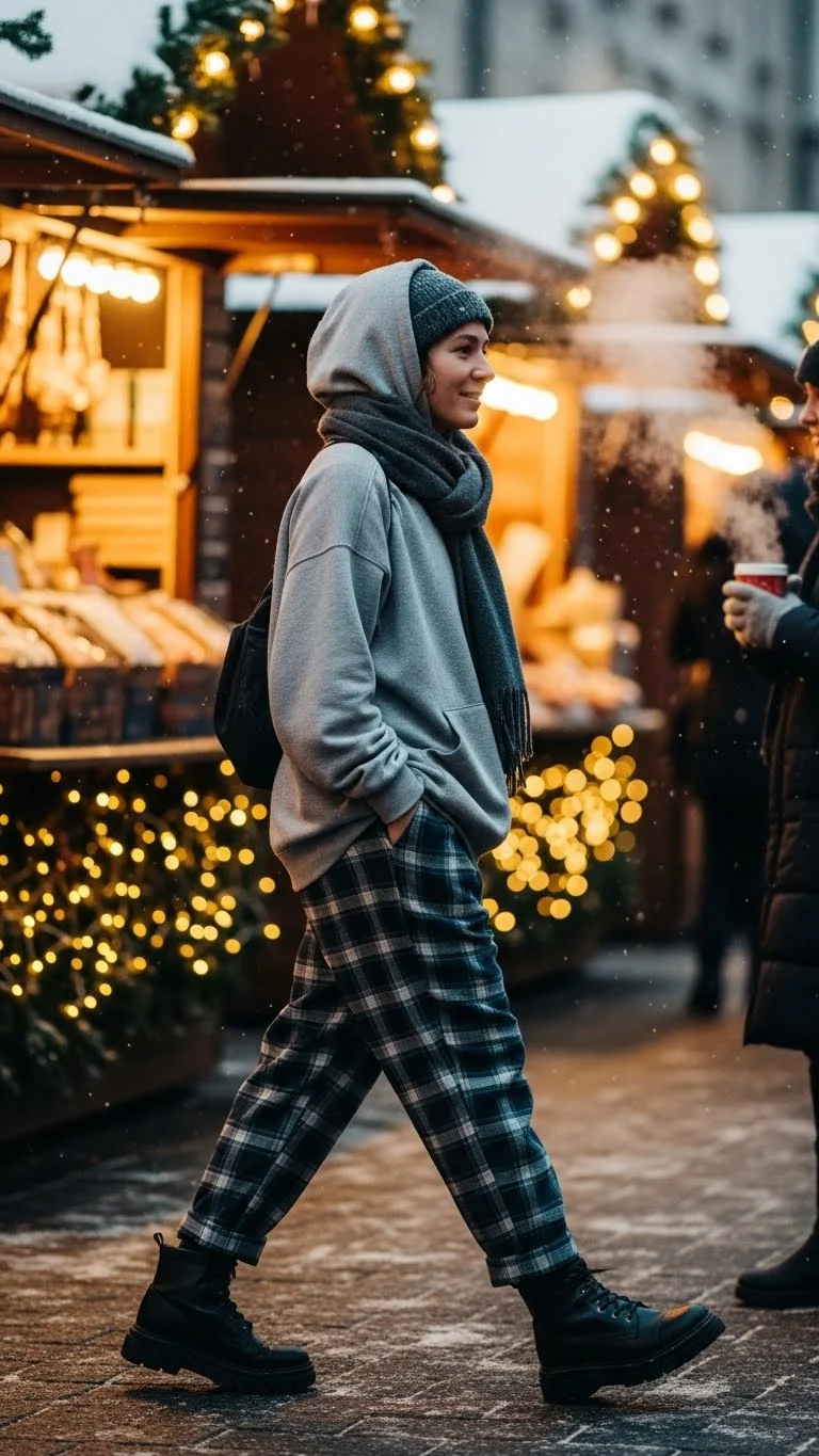 If your jeans feel too plain, cuff the hem for a relaxed vibe. Layer thin thermals under your hoodie for extra warmth without adding bulk. This outfit works for casual hangouts, coffee runs, or last-minute holiday errands. It’s simple but still festive, and you can create it with pieces already in your closet.