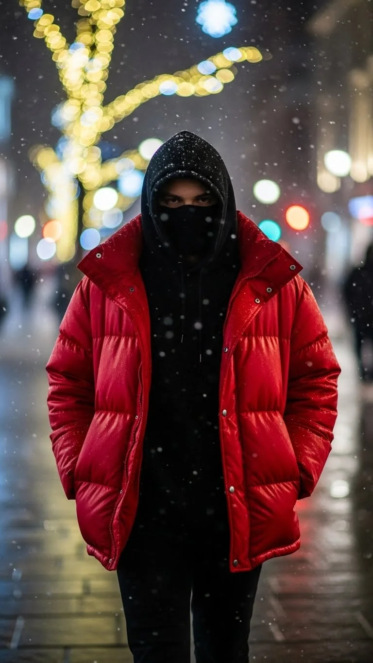 A red puffer jacket stands out instantly during the holidays. The color feels seasonal without feeling dressy. Pair it with black denim for a balanced street look. You can add a simple grey hoodie underneath for comfort. Chunky sneakers or ankle boots work well with this combo.