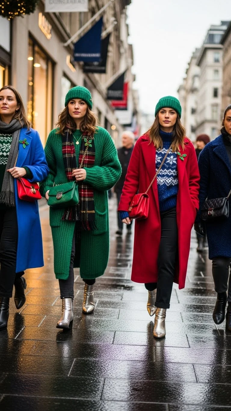 The holiday season brings bold color, cozy fabrics, and playful details to everyday clothing. Christmas street style is all about mixing comfort with personality. It feels relaxed but still festive. This guide gives you simple ideas you can pull from your closet and style in minutes. Each look is easy, affordable, and perfect for casual outings, quick errands, Christmas markets, or cozy walks through decorated streets.