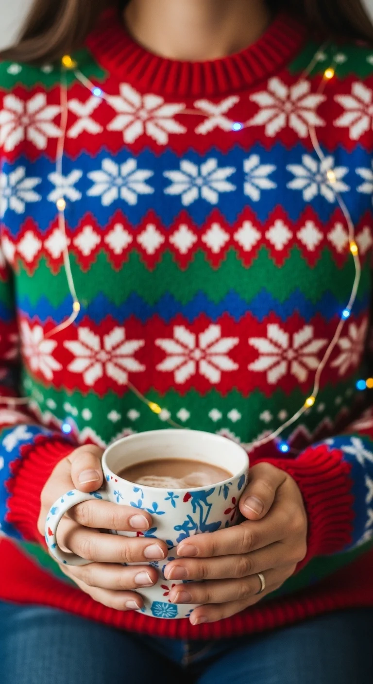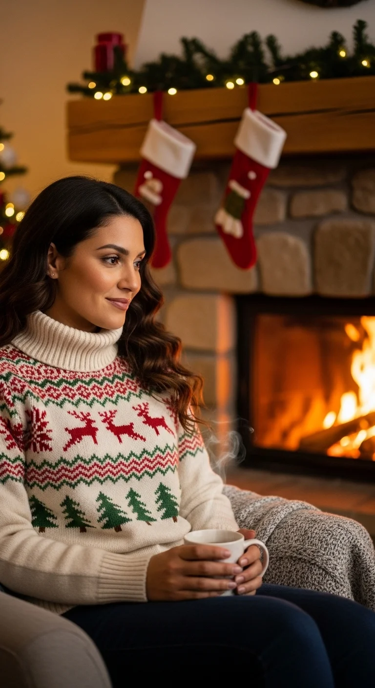 Fair Isle patterns are timeless and stylish. Pair with neutral bottoms. Budget-friendly: Online retailers often sell Fair Isle knits under $30. DIY: Add subtle glitter accents for sparkle. Perfect for office parties or family photos.