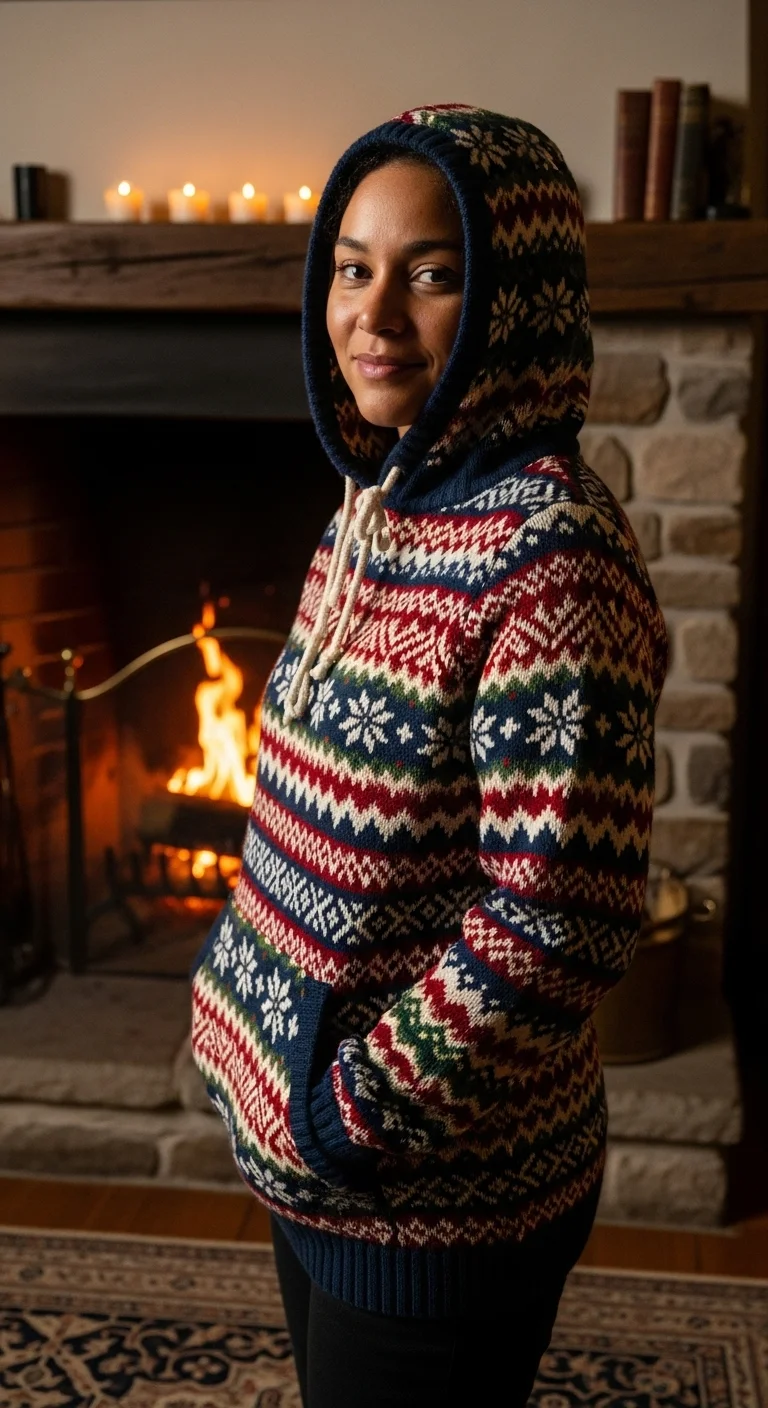 Nordic patterns are classic winter motifs. Pair with jeans or corduroy pants. Budget tip: Seasonal sales often under $35. DIY: Add small embroidered stars or snowflakes. Works for outdoor gatherings and holiday events.