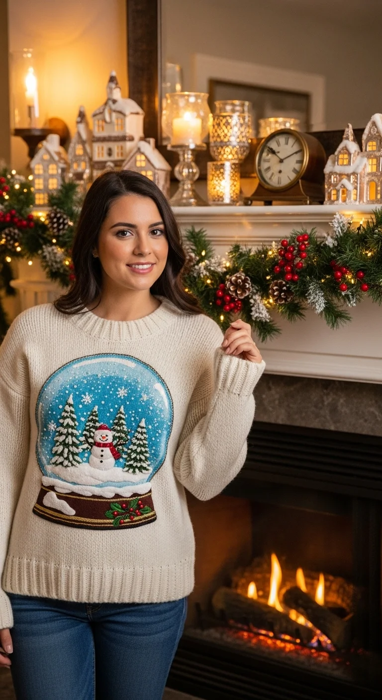 3D motifs add dimension and fun. Pair with leggings or jeans. Budget-friendly: Fast-fashion stores often carry novelty sweaters under $35. DIY: Add small beads or glitter for snow effect. Ideal for festive photos or casual gatherings.