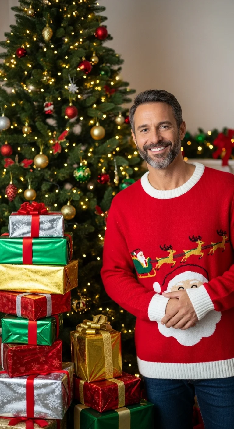 Santa-themed sweaters are playful and fun. Pair with jeans or corduroy pants. Budget-friendly: Under $25 online. DIY: Add felt details or sequins for a custom touch. Ideal for family gatherings and office parties.