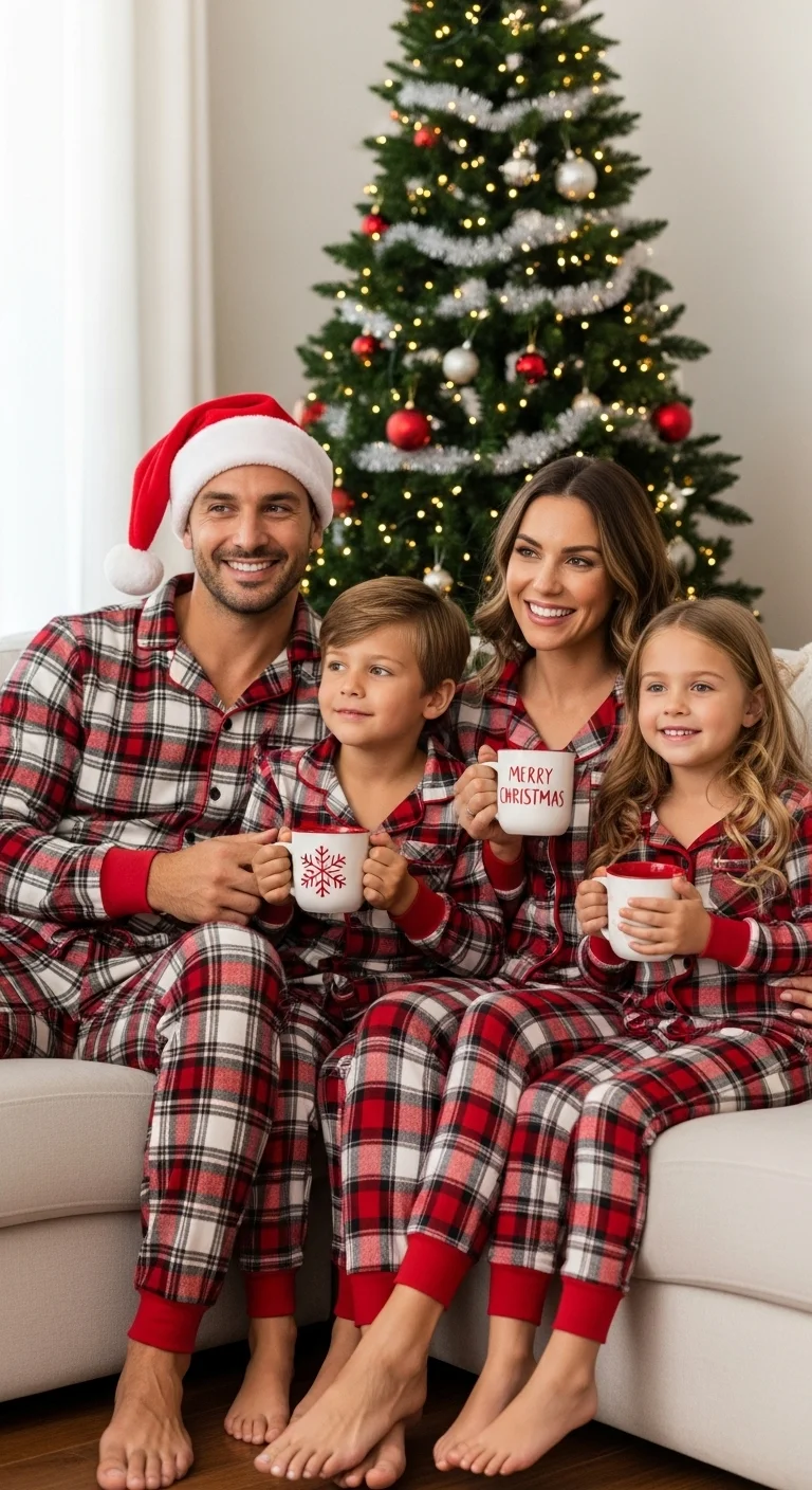 Matching Christmas pajamas are cozy and fun. Perfect for home gatherings and festive photos. Look for cute prints like candy canes, snowflakes, or reindeer. Budget tip: Affordable sets are often under $30. DIY: Customize plain pajamas with fabric paint or iron-on patches. Ideal for relaxed mornings or movie nights with family.