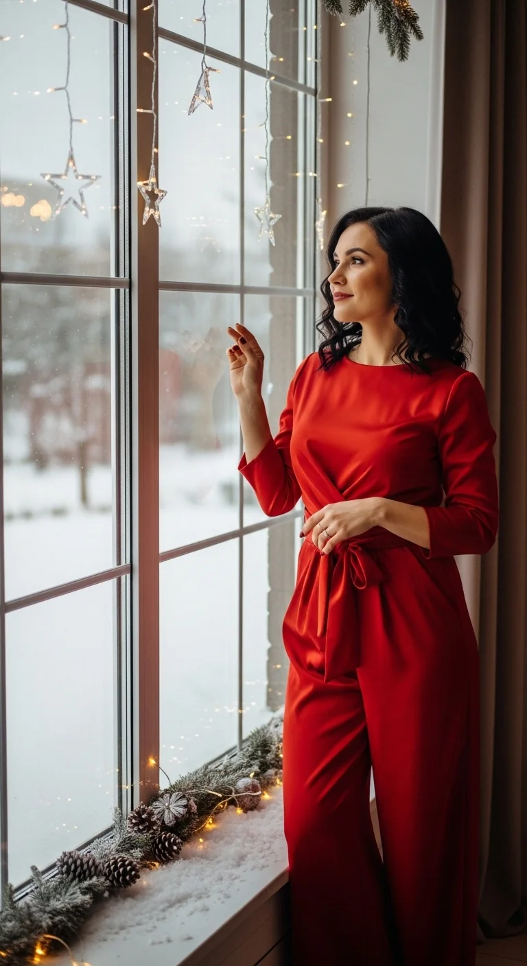 A jumpsuit is an easy way to look chic and festive. Satin or velvet fabrics work best. Add a metallic belt and heels or flats depending on comfort. Budget tip: Check online stores for affordable options under $50. DIY: Attach a decorative belt or sparkly accessories. Perfect for cocktail parties or casual holiday gatherings.