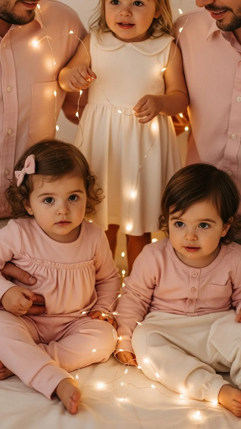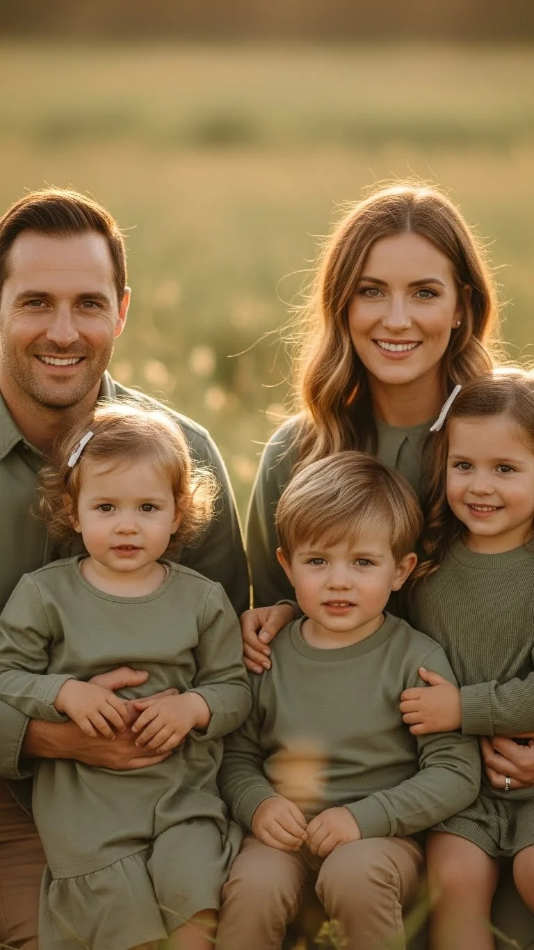 Jewel tones photograph well because the colors pop without overwhelming the frame. Let each family member wear a different jewel shade for a natural mix. Kids can wear velvet dresses or simple tops in bold tones. Add small neutral items—beige boots or cream tights—to soften the colors. You don’t need new pieces; just pick rich shades already in your closet.