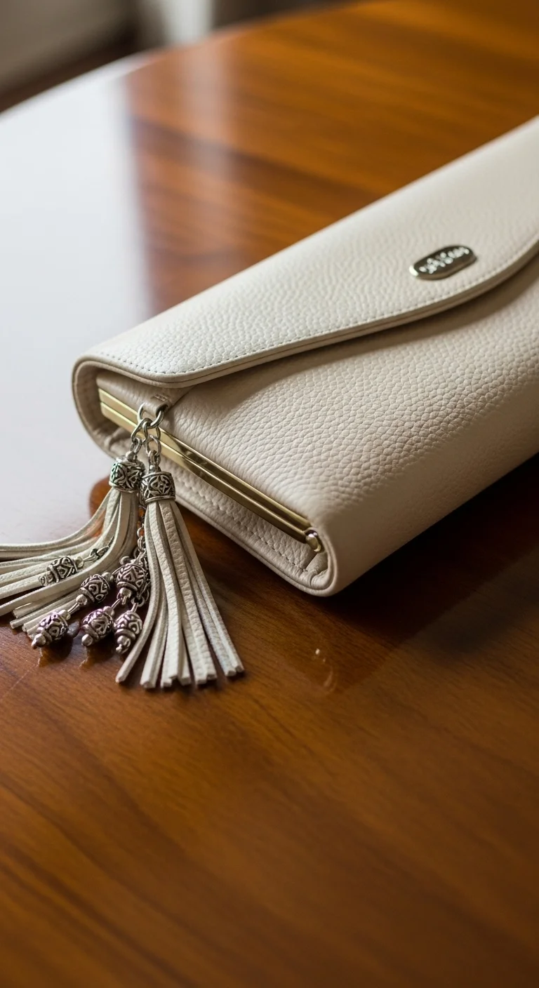 1. Soft Beige Clutch with Tassels