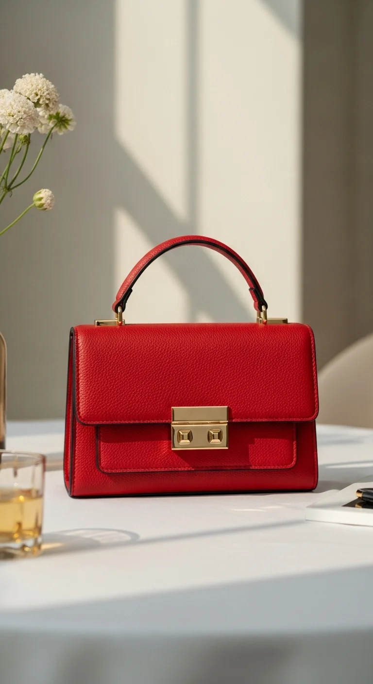 Mini red top handle clutches are bold yet compact. Pair with dresses or tailored outfits. Budget-friendly: PU leather alternatives are affordable. DIY: attach metallic charms for flair. Perfect for evening dates or casual brunch.