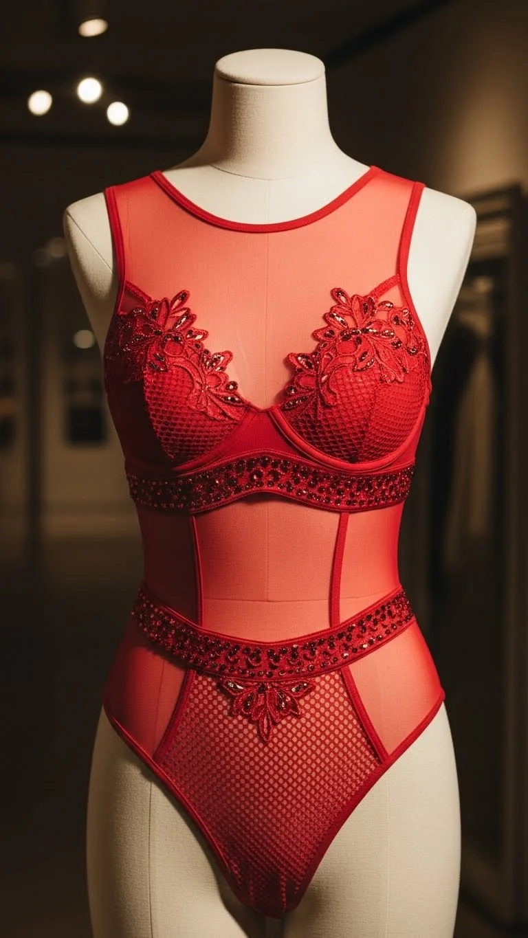 Mesh bodysuits are bold and modern. Pair with a matching bra and panty or wear as a standalone piece. Budget tip: check online for affordable mesh options. DIY: sew a small heart-shaped patch on the back or chest for customization. This style hugs the body while feeling edgy, making it perfect for an intimate Valentine evening.