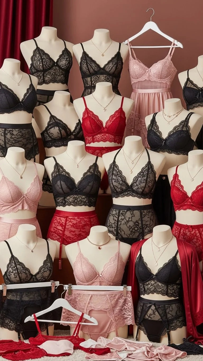 Mixing satin and lace creates contrast. Budget-friendly: buy sets separately for savings. DIY: sew small accents on panties or bra straps. Perfect for Valentine nights, it’s bold yet elegant, combining texture and color effortlessly.