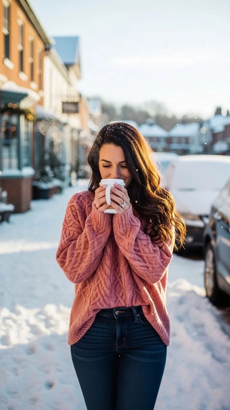 Cable knit sweaters add texture and coziness. Pair with jeans and boots. Budget-friendly: thrift or DIY with knit trims. Add a scarf or hat for extra warmth. Perfect for casual Valentine meetups.