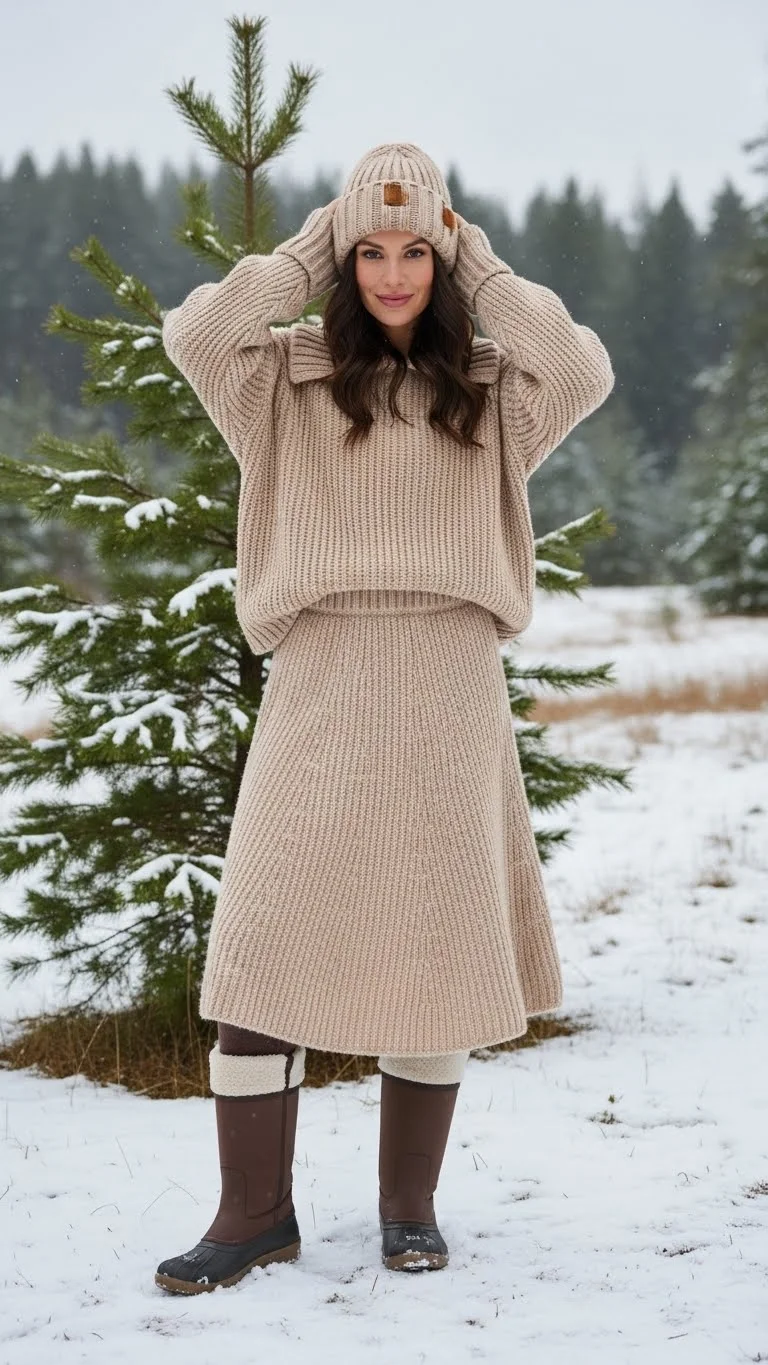 Cable knit dresses keep you warm. Pair with tights and boots. Budget: thrift dresses. DIY: add belts or scarves to define waist. Perfect for brunch or dinner dates.