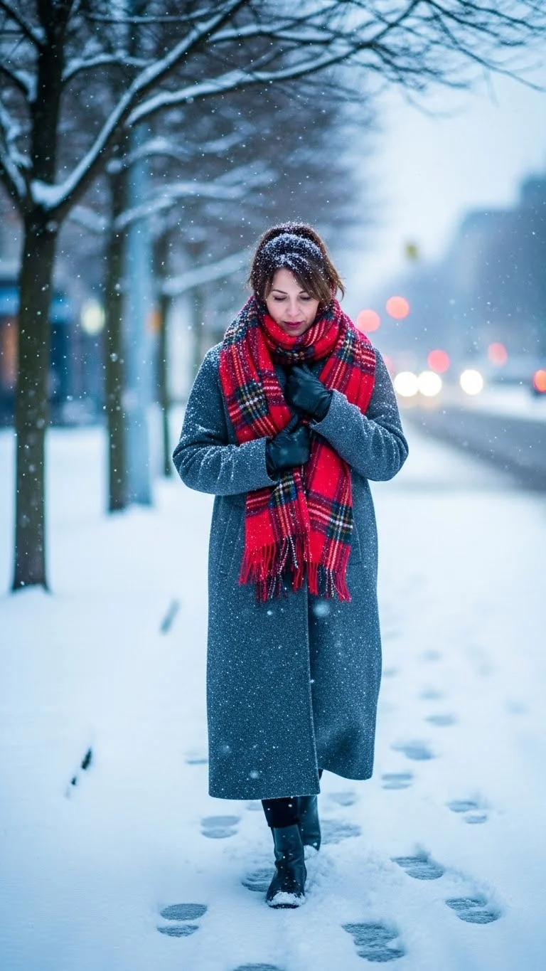 Layering a wool coat with a plaid scarf combines warmth with style. Budget-friendly: thrift a classic coat and pair with affordable scarves. DIY: cut old scarves and stitch edges for a new look. Complete the outfit with boots or loafers. Great for walking dates, shopping trips, or casual Valentine outings.