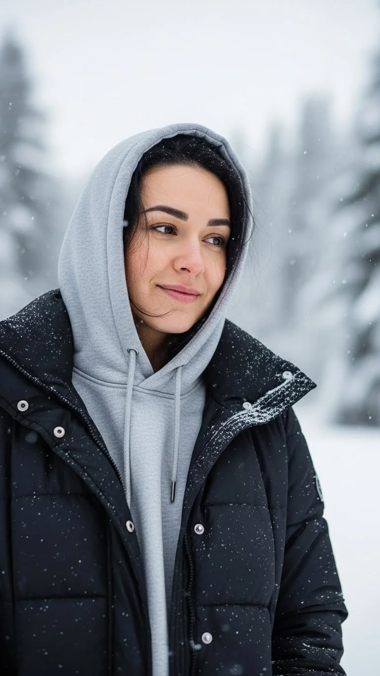 Layering a hoodie under a puffer jacket combines comfort and warmth. Budget: thrift hoodies and jackets. Footwear: boots. Add gloves and scarf. Ideal for casual winter outings.
