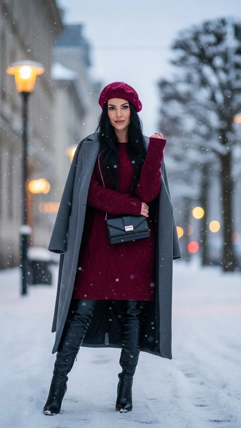 Matching a wool beret with a coat adds chic coordination. Budget-friendly: thrift berets or DIY with felt. Complete with gloves and boots. Works for city dates or cozy café visits.