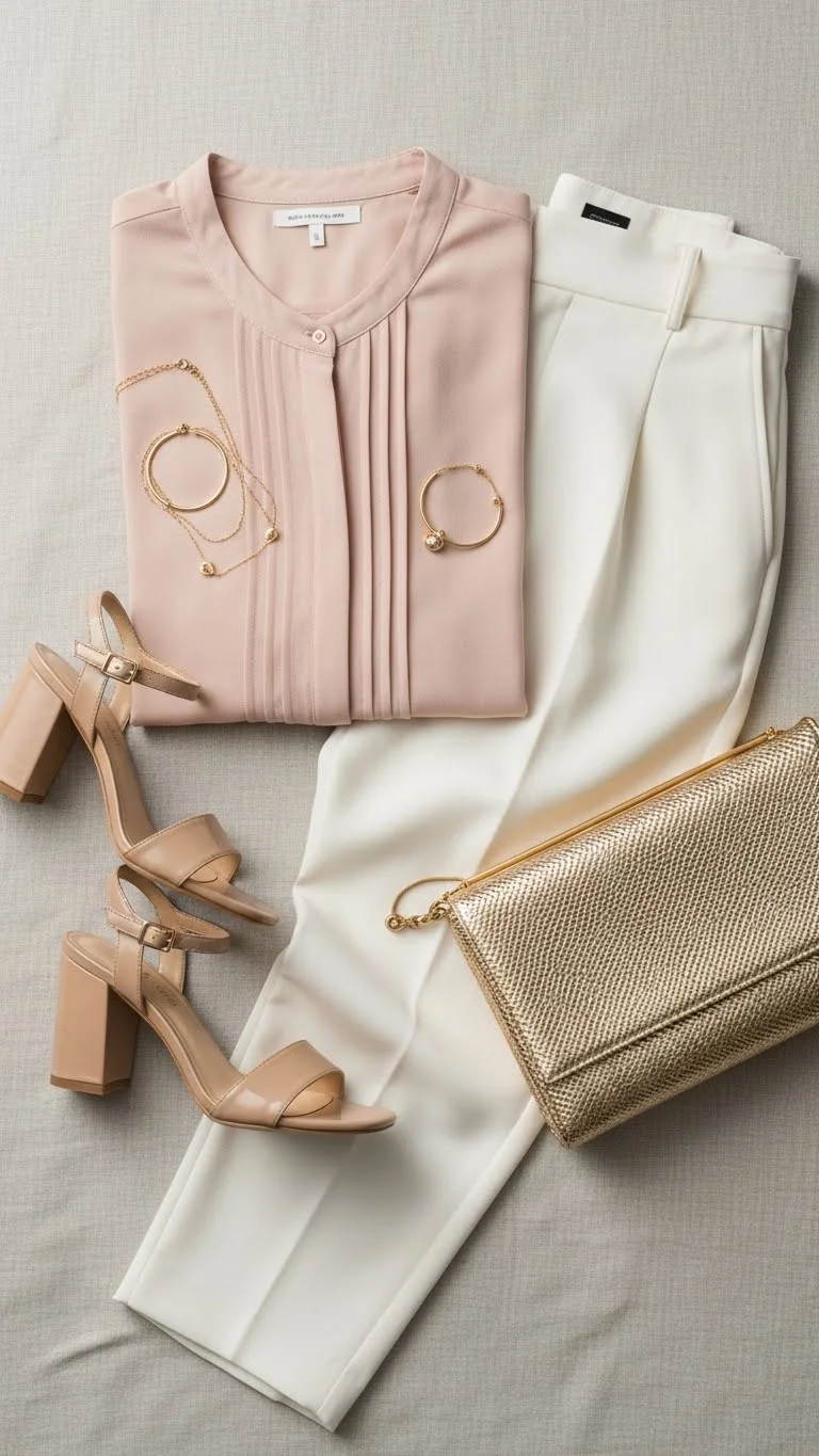 - Subtle hints: pink shoes, a belt, or earrings with a neutral base outfit