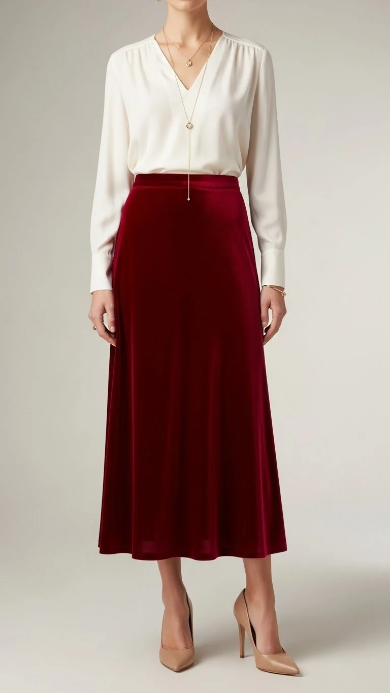 - Velvet skirts or shoes for a luxe touch